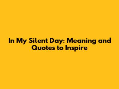 Have you ever stumbled upon the phrase "in my silent day" and wondered about its meaning? Or perhaps you're looking for quotes that capture the essence of quiet reflection and personal introspection? Well, you've come to the right place, guys! Let's dive deep into the world of silent days and explore what they truly mean, along with some inspiring quotes that resonate with this theme.