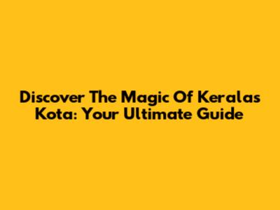 Discover The Magic Of Kerala's Kota: Your Ultimate Guide