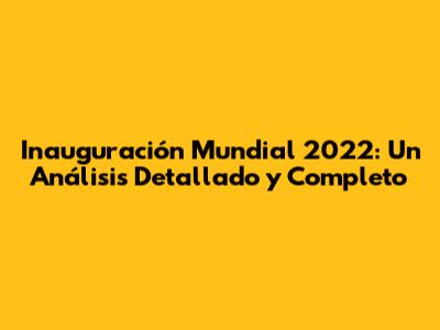 Inauguración Mundial 2022: Un Análisis Detallado Y Completo
