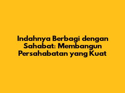 Indahnya berbagi dengan sahabat adalah pengalaman yang luar biasa. Melalui berbagi, kita membangun persahabatan yang kuat, saling mendukung, dan menciptakan kenangan indah bersama. Jangan ragu untuk berbagi waktu, perasaan, pengetahuan, dan materi dengan sahabatmu. Jadilah sahabat yang selalu ada, peduli, dan memberikan dampak positif dalam kehidupan mereka. Ingatlah, persahabatan sejati adalah tentang saling berbagi dan saling mendukung dalam suka dan duka. Jadi, teruslah merangkul indahnya berbagi dengan sahabatmu dan nikmati perjalanan persahabatan yang penuh makna dan kebahagiaan.