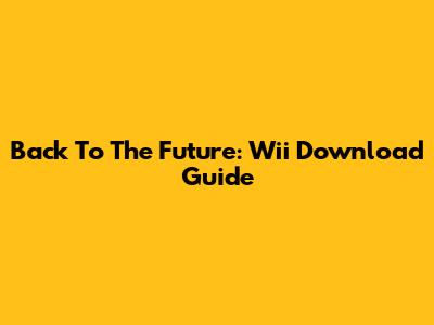Back To The Future: Wii Download Guide