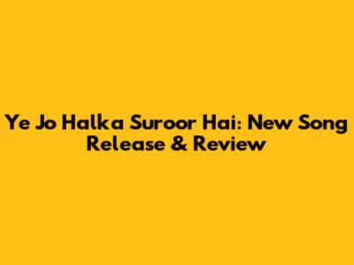 Ye Jo Halka Suroor Hai: New Song Release & Review