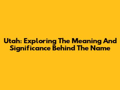 Utah: Exploring The Meaning And Significance Behind The Name