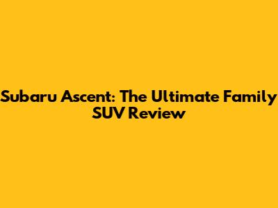 Subaru Ascent: The Ultimate Family SUV Review