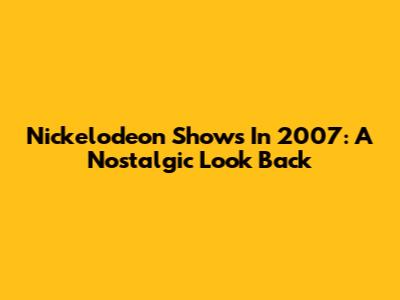 Nickelodeon Shows In 2007: A Nostalgic Look Back