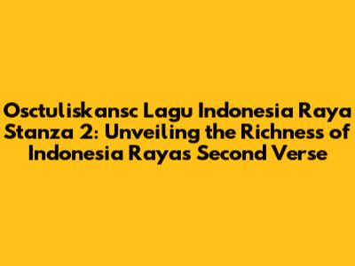 Hey guys! Ever found yourself humming along to Indonesia Raya, our national anthem, but stumbling a bit when you get to the second verse, or stanza 2? You're not alone! Many Indonesians know the first verse by heart, but the subsequent stanzas often get less attention. Let's dive deep into understanding the Osctuliskansc Lagu Indonesia Raya Stanza 2, breaking down its lyrics, meaning, and historical context. Trust me, once you understand it, you'll appreciate Indonesia Raya even more!