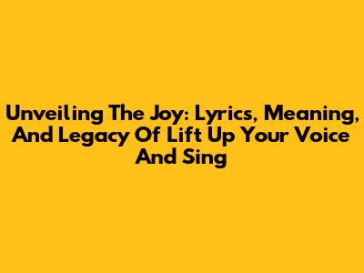 Unveiling The Joy: Lyrics, Meaning, And Legacy Of 'Lift Up Your Voice And Sing'