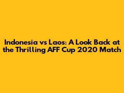 Hey guys! Let's rewind the clock and dive into a match that had us all on the edge of our seats: the Indonesia vs. Laos clash at the AFF Cup 2020. This wasn't just any game; it was a rollercoaster of emotions, showcasing the raw passion and competitive spirit that makes Southeast Asian football so darn exciting. We're going to break down everything, from the key moments and the players who shone to the overall impact of this match on the tournament and the fans. So, grab your virtual popcorn, and let's get started!