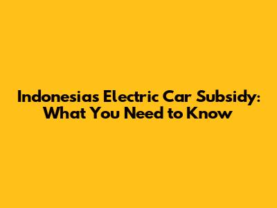 Understanding the Indonesian Electric Car Subsidy Program