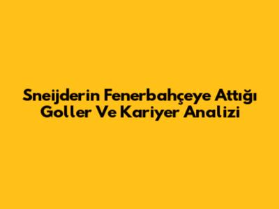 Sneijder'in Fenerbahçe'ye Attığı Goller Ve Kariyer Analizi