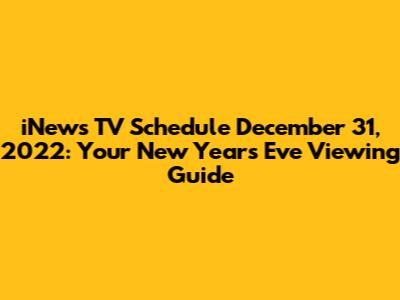 Hey guys! Are you ready to ring in the New Year? 🎉 If you're planning on a cozy night in, complete with snacks and some awesome TV, then you're in the right place. This article is your ultimate guide to the iNews TV schedule for December 31, 2022. We'll dive into what programs were on the air, so you won't miss a beat. Get ready to explore the lineup and make sure you've got your remote control handy! This is your go-to source for all things iNews TV on that special New Year's Eve.