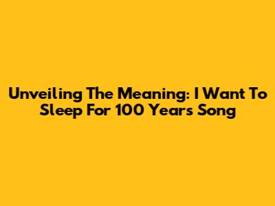 Unveiling The Meaning: 'I Want To Sleep For 100 Years' Song