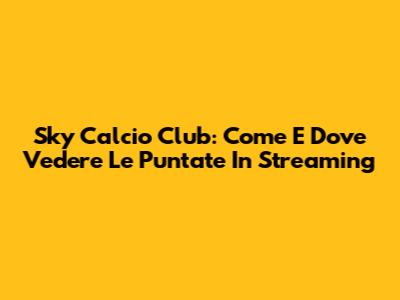 Sky Calcio Club: Come E Dove Vedere Le Puntate In Streaming