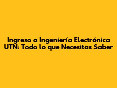 Requisitos para el Ingreso a Ingeniería Electrónica en la UTN
