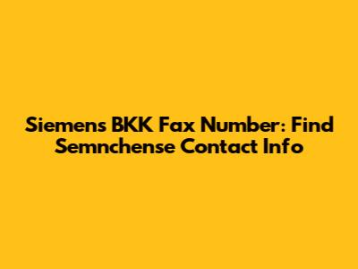 Siemens BKK Fax Number: Find Semnchense Contact Info