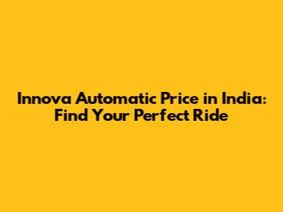 Hey guys! Are you looking to buy a new car in India and thinking about the Toyota Innova with an automatic transmission? You've come to the right place! In this article, we'll dive deep into everything you need to know about the Innova Automatic price in India. We'll cover the different models, what affects the price, and how to find the best deals. So, buckle up and let's get started!