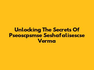 Unlocking The Secrets Of Pseoscpsmse Seshafalisescse Verma