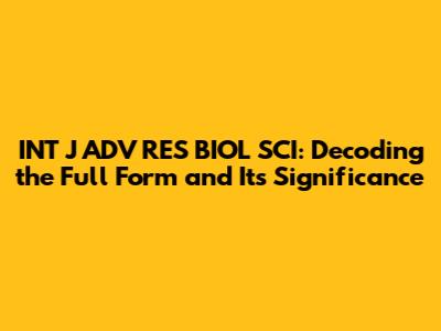 Unveiling the Full Form: INT J ADV RES BIOL SCI
