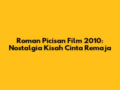 Roman Picisan Film 2010: Nostalgia Kisah Cinta Remaja