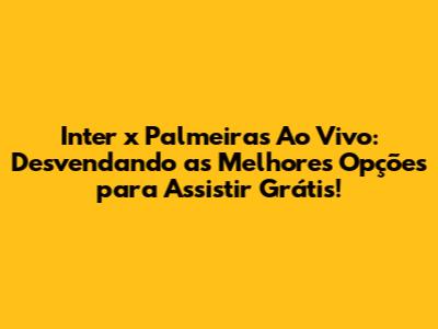 Onde Assistir Inter x Palmeiras Ao Vivo Sem Pagar?
