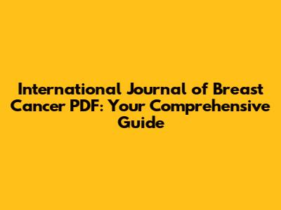 Accessing articles from the International Journal of Breast Cancer in PDF format is generally straightforward due to its open-access nature. Here's a step-by-step guide: