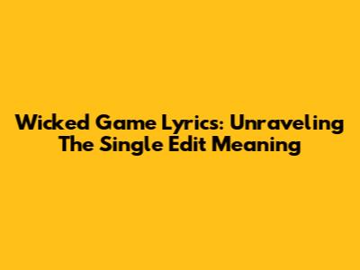 Wicked Game Lyrics: Unraveling The Single Edit Meaning