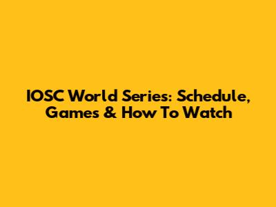 IOSC World Series: Schedule, Games & How To Watch