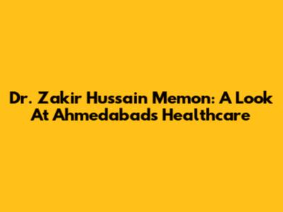 Dr. Zakir Hussain Memon: A Look At Ahmedabad's Healthcare