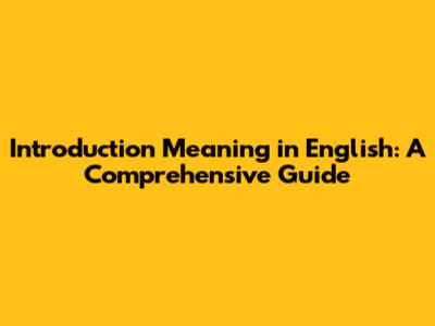 What Does "Introduction" Mean?