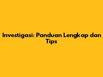 Investigasi: Panduan Lengkap dan Tips