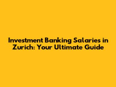 Entry-Level Salaries in Zurich Investment Banking