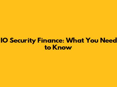 Understanding IO Security Finance