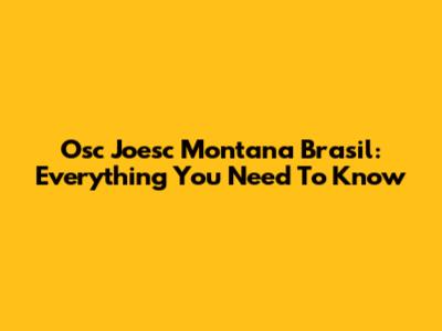 Osc Joesc Montana Brasil: Everything You Need To Know
