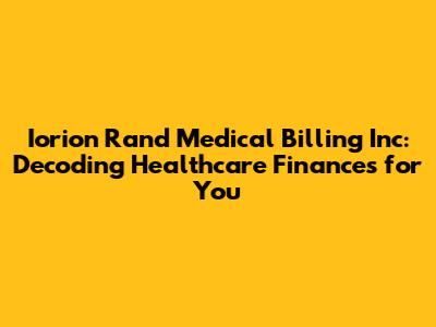 Demystifying Medical Billing: The Role of Iorion Rand
