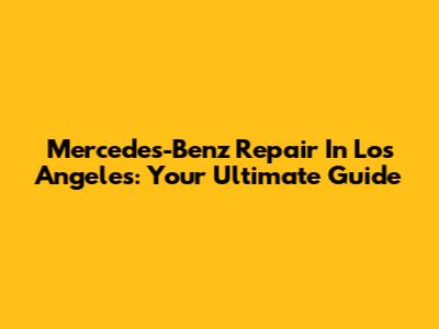 Mercedes-Benz Repair In Los Angeles: Your Ultimate Guide