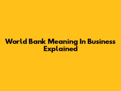 World Bank Meaning In Business Explained