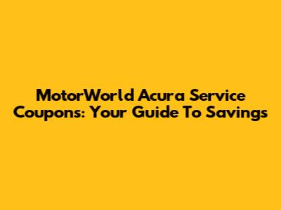 MotorWorld Acura Service Coupons: Your Guide To Savings