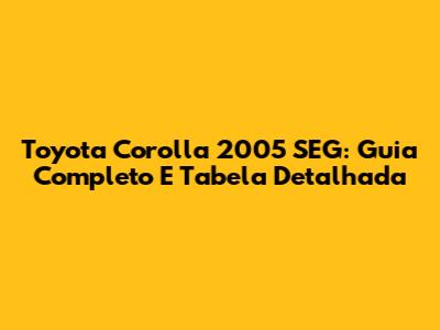 Toyota Corolla 2005 SEG: Guia Completo E Tabela Detalhada