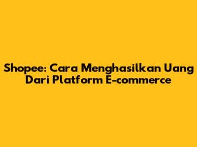 Shopee: Cara Menghasilkan Uang Dari Platform E-commerce