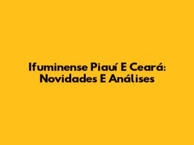 Ifuminense Piauí E Ceará: Novidades E Análises