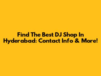Find The Best DJ Shop In Hyderabad: Contact Info & More!