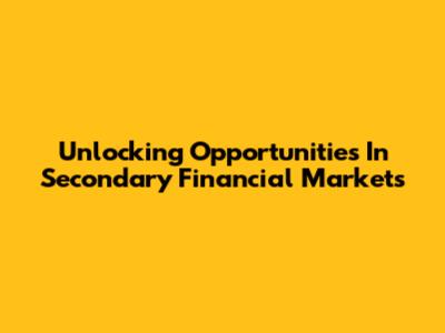 Unlocking Opportunities In Secondary Financial Markets