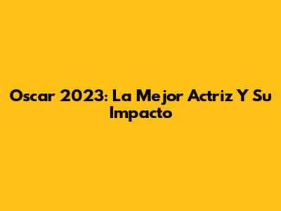 Oscar 2023: La Mejor Actriz Y Su Impacto
