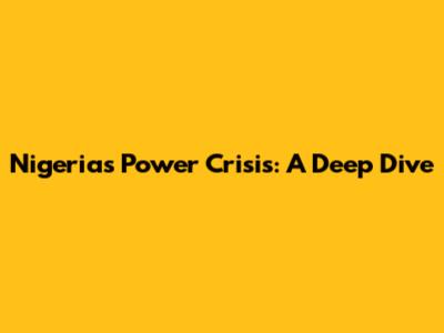 Nigeria's Power Crisis: A Deep Dive