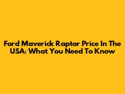 Ford Maverick Raptor Price In The USA: What You Need To Know