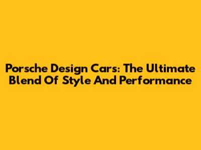 Porsche Design Cars: The Ultimate Blend Of Style And Performance