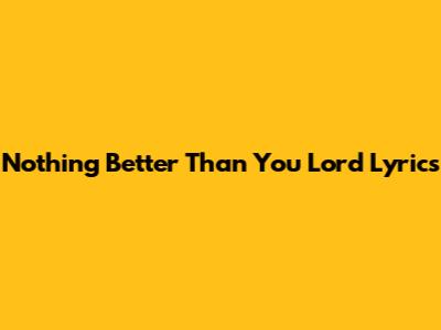 Nothing Better Than You Lord Lyrics