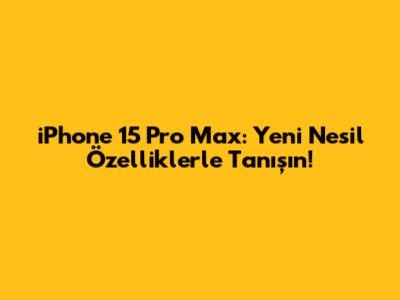 iPhone 15 Pro Max ile tanışmaya hazır olun, teknoloji dünyasında çığır açan bir canavar! Bu cihaz, sadece bir telefon olmanın ötesinde, adeta cebinizdeki bir stüdyo gibi. Tasarımından, kamerasından, işlemci gücüne kadar her detayıyla çıtayı yükseltiyor. Gelin, iPhone 15 Pro Max'in sunduğu yeniliklere ve bu cihazı neden bu kadar özel yaptığına yakından bakalım, heyecan verici özelliklerine birlikte göz atalım.
