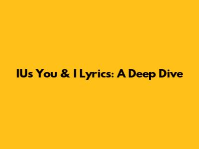 IU's "You & I" Lyrics: A Deep Dive