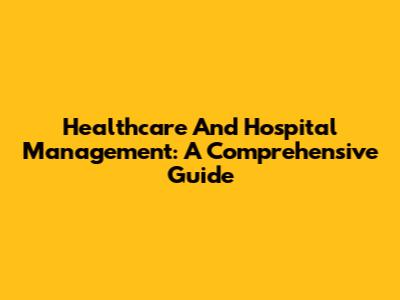 Healthcare And Hospital Management: A Comprehensive Guide